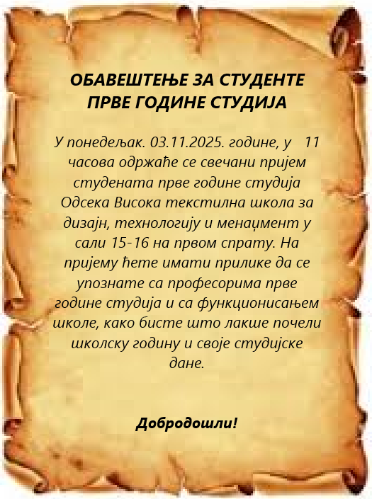 • Пријемни испит Текстилно инжењерсрво: 10. јул 2025.