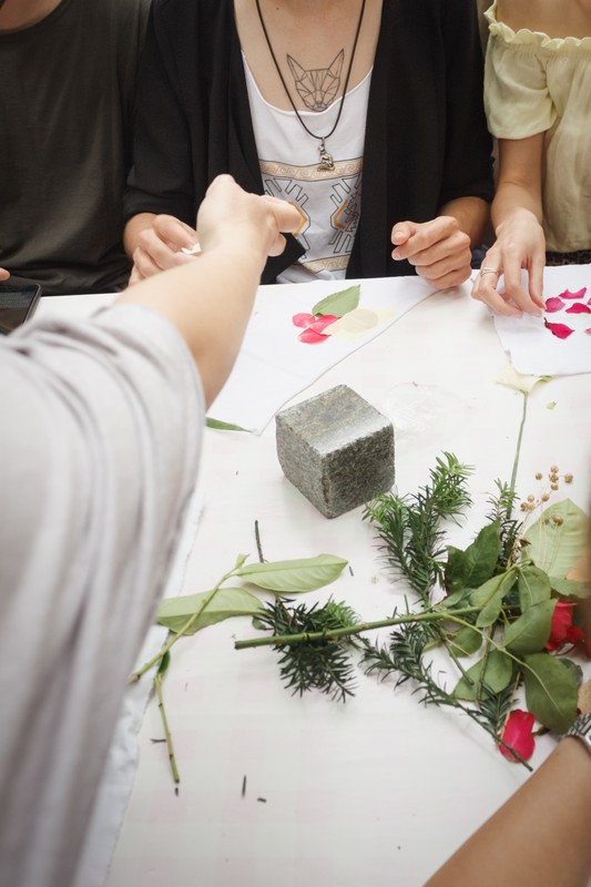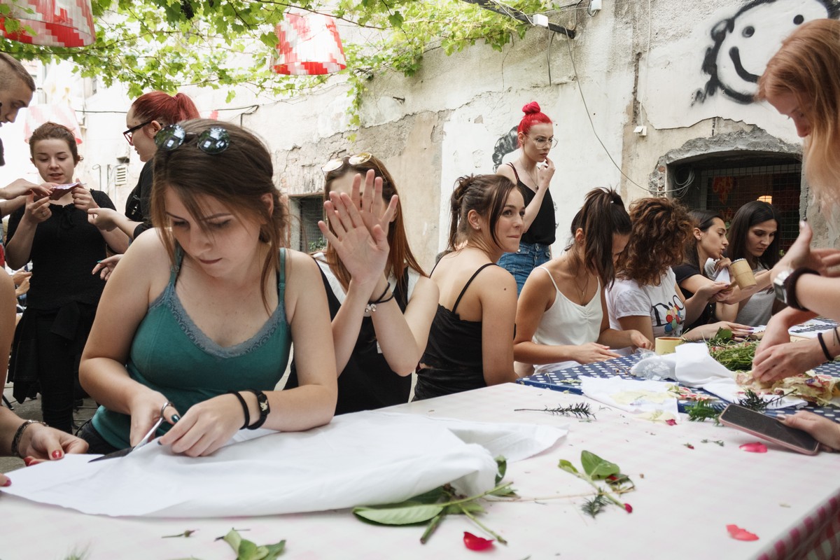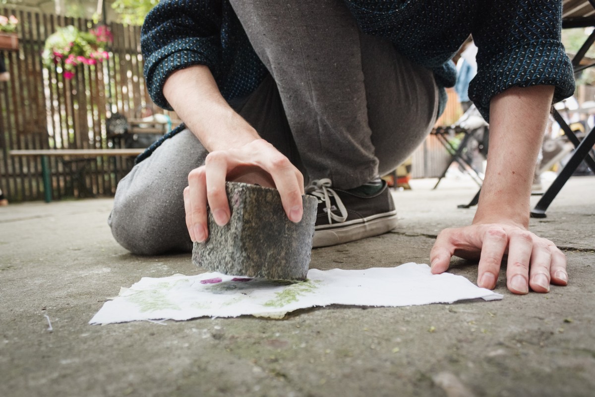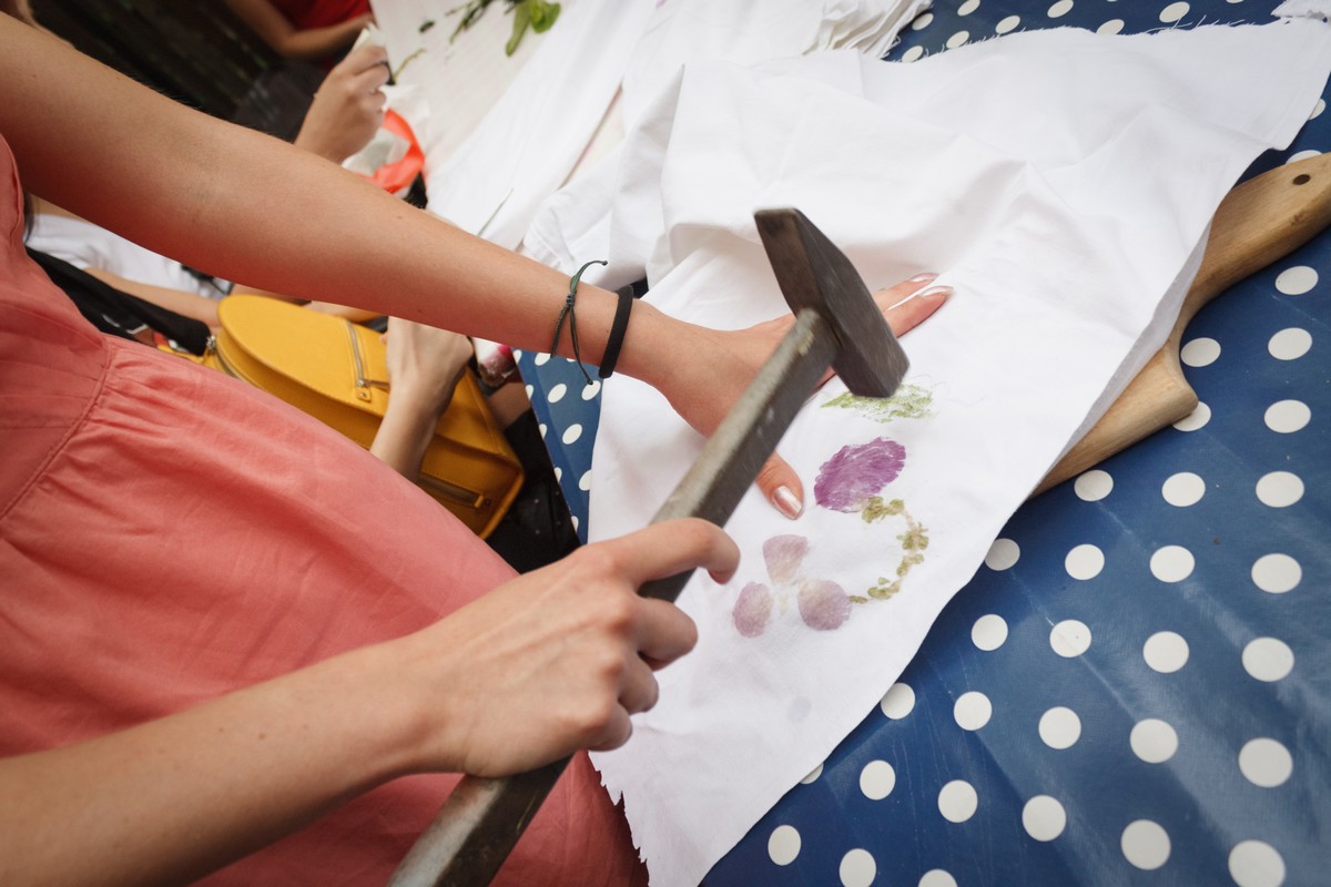 Изненађујући интензитет и постојаност боја, које је могуће добити овим поступком, говори о томе да је прибор за визуелни израз на текстилу доступан и на оближњим ливадама или у цвећарама. Током радионице је приказан поступак штампања цвећем а учесници су могли да понесу и своје цвеће и памучне одевне предмете или тканине како би им овом приликом подарили нови живот.