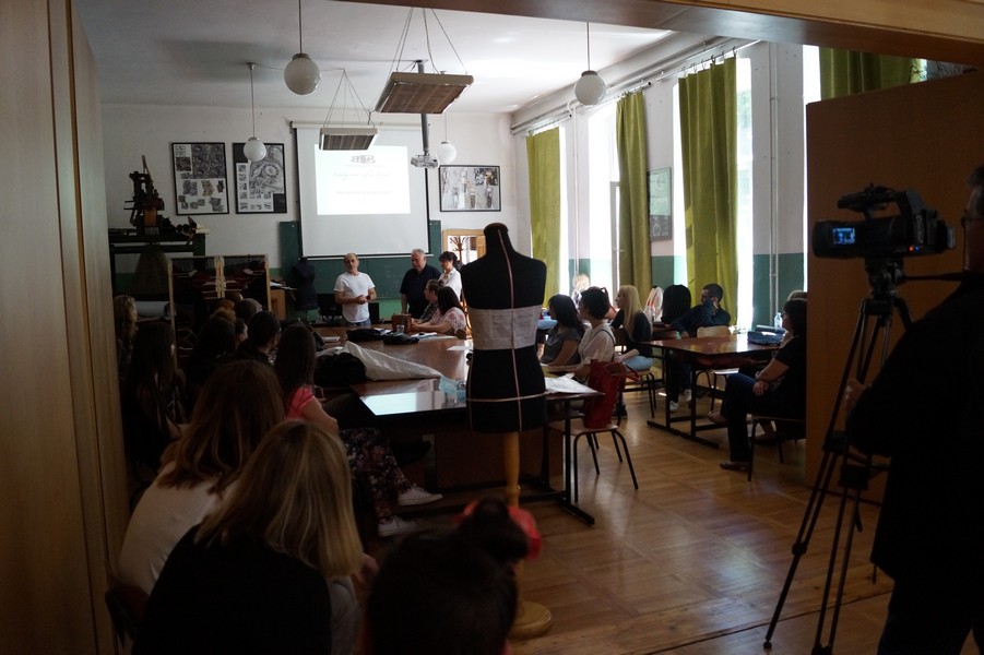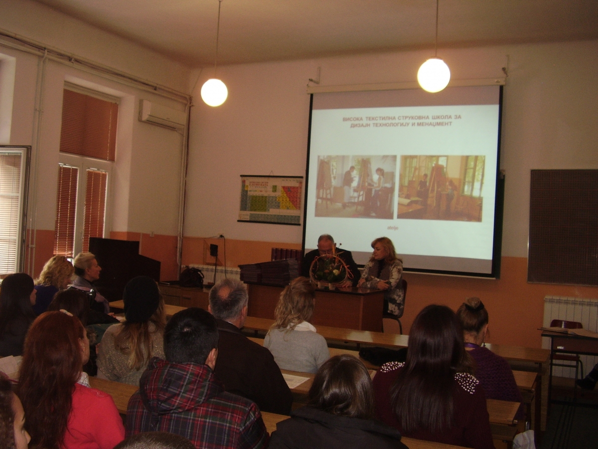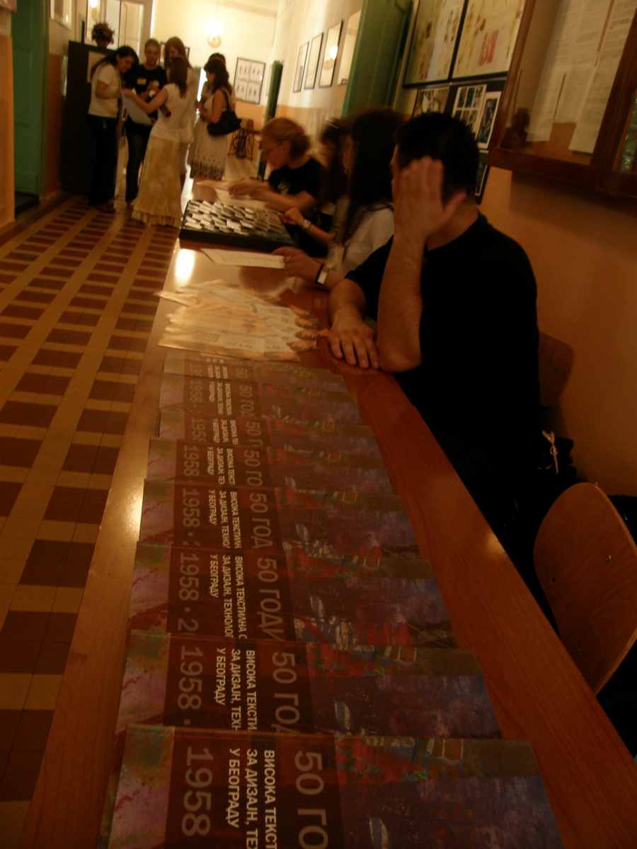 Одсек Висока текстилна школа за дизајн, технологију и менаџмент је државна образовна институција основана 1958. године. У оквиру низа манифестација којима Школа обележава 60 година постојања, идеја пројекта “Школа на столу, сто у граду, град на води” је представљање радова одсека за дизајн текстила и одеће који континуирано постоји од 1993. године. Поникла у богатој традицији текстилне индустрије овог поднебља, Школа са одсеком Дизајн текстила и одеће наставља тај континуитет излагањем у галерији која припада текстилном наслеђу, односно у некадашњем магацину модне куће Центротекстил, данас познатом као Велика галерија КЦ град.